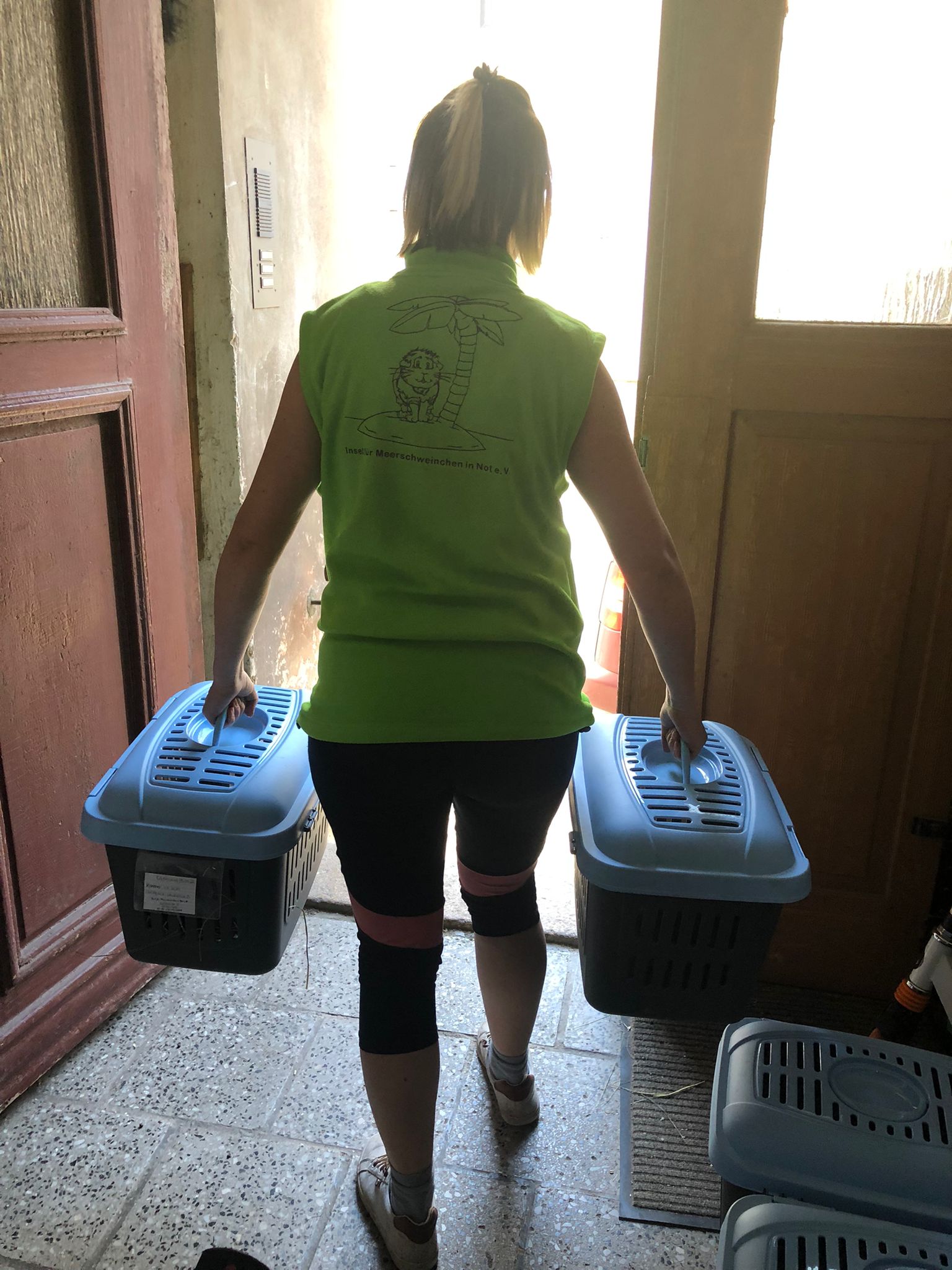 Vergangene Woche (KW 18.2022) klingelte bei uns das Telefon: Eine Mitarbeiterin der Sendung „HundKatzeMaus“ fragte an, ob wir aus dem sächsischen Raum 32 Meerschweinchen aufnehmen können. Es hatte sich eine junge Frau gemeldet und händeringend um Hilfe gebeten. Schnell wurde unsere TÄ mit ins Boot geholt und der Tag ausgemacht, wann die Schweinchen abgeholt werden (mit dem Kamerateam). Leider erhielten wir am Abend dann die Nachricht, dass ein Teammitglied an dem Tag nicht konnte, sodass für den 20.5. ein neuer Termin vereinbart wurde. Wir äußerten von Anfang an unsere Bedenken, dass bei den Zuständen ein Abholen in zwei Wochen einfach zu spät sei. Leider konnte aber das VOX-Teams nicht eher.